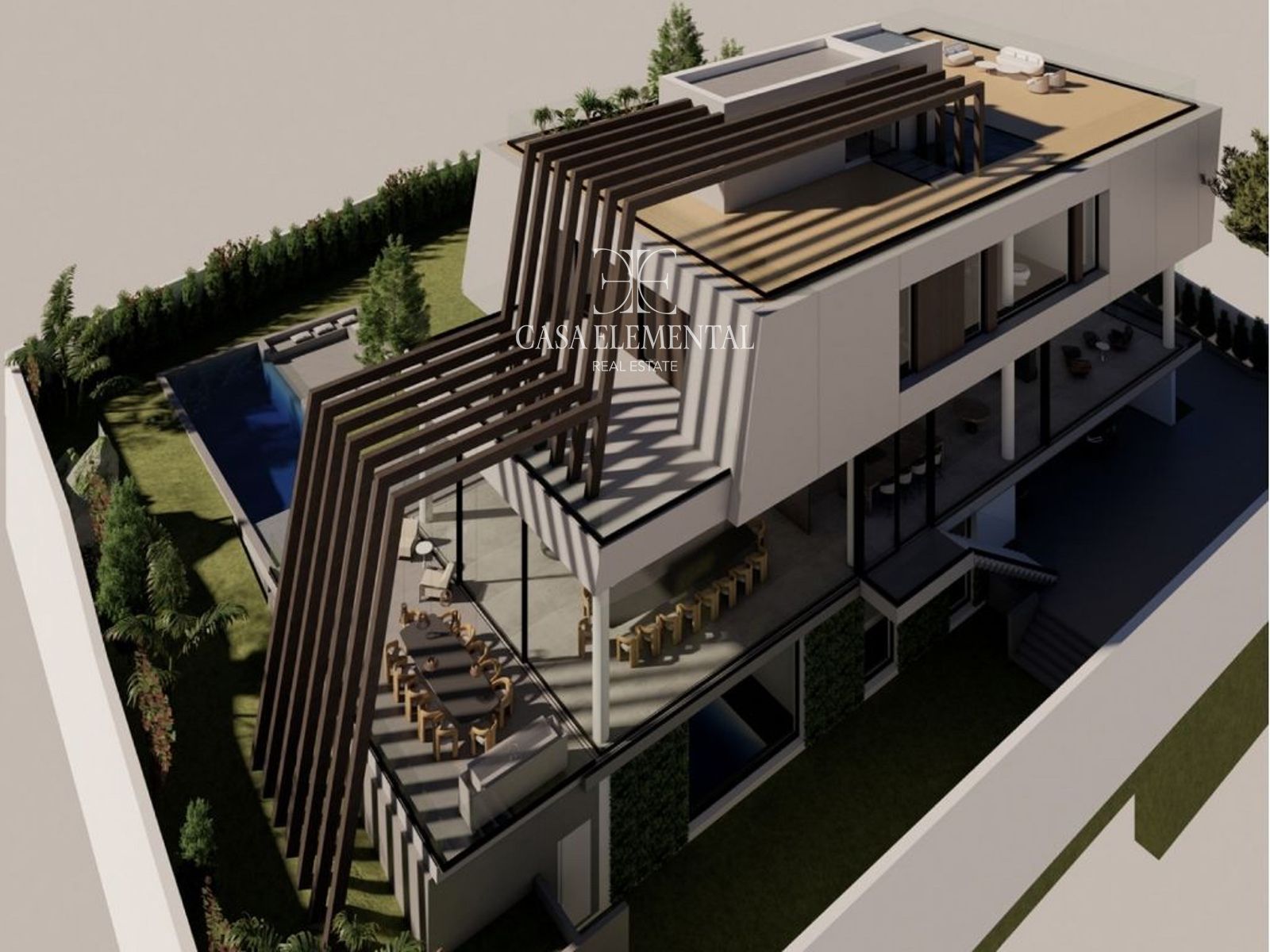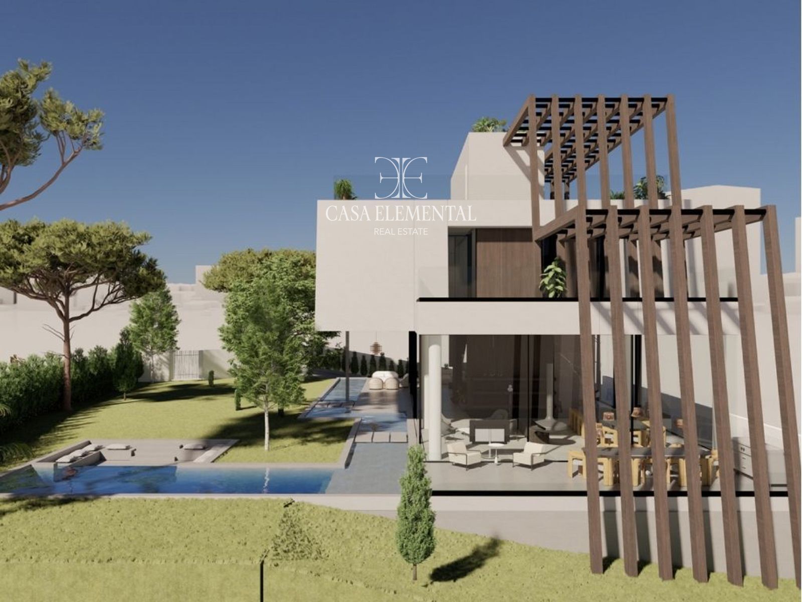 Outstanding standalone villa located in the prestigious residential district of Conde de Orgaz, one of Madrid’s most sought-after and serene neighborhoods. Set on a 1,200 m² plot, this exceptional architectural project features a cutting-edge design where water and nature take center stage.