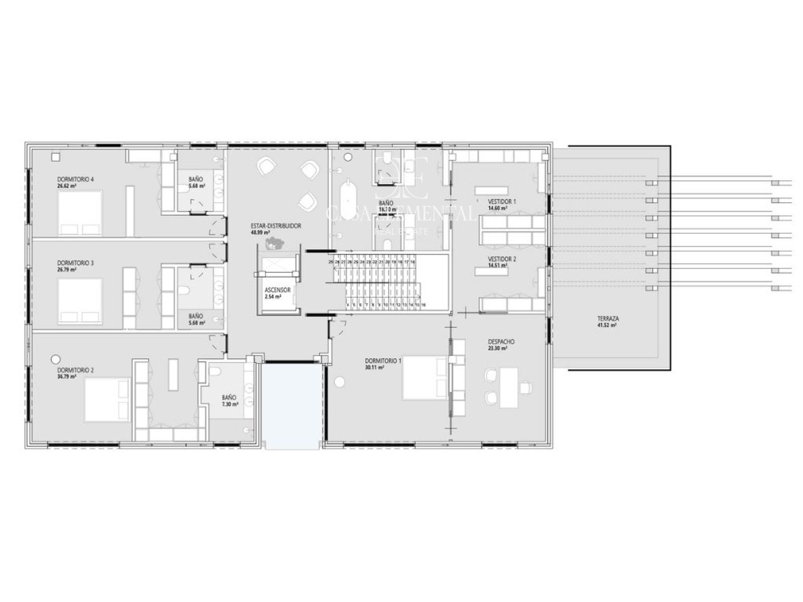 Built around a welcoming lobby overlooking the interior waterfalls. Includes a magnificent 100 m² primary suite with two walk-in closets, bathroom, bedroom and private study. Additionally, three more bedrooms are offered, each with its own en-suite bathroom and dressing area.