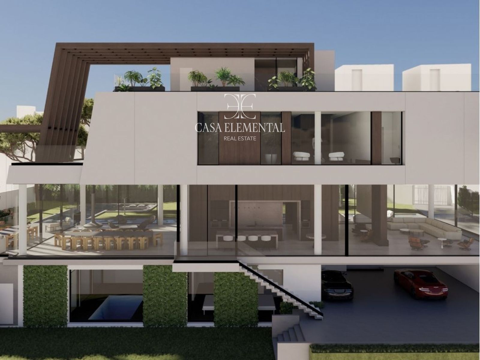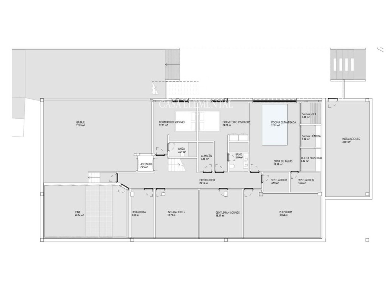 Designed for comfort and entertainment: a guest bedroom with en-suite bathroom, service quarters, home cinema, gentleman lounge, beauty room, wellness area, playroom, and garage.