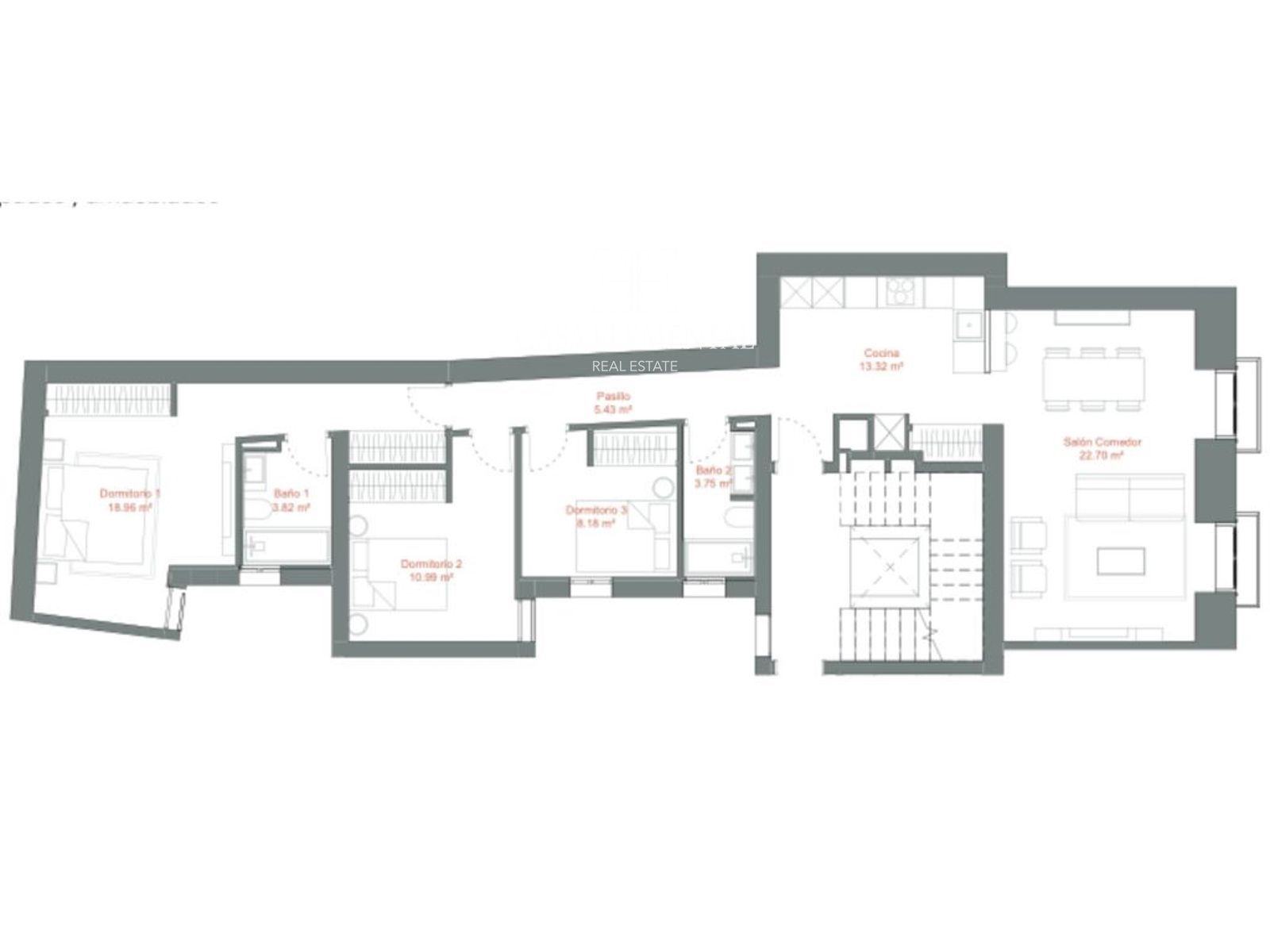 Located in the sought-after Justicia neighborhood, this impressive 151 m² apartment on the second floor stands out for its spacious layout, abundant natural light and modern design.