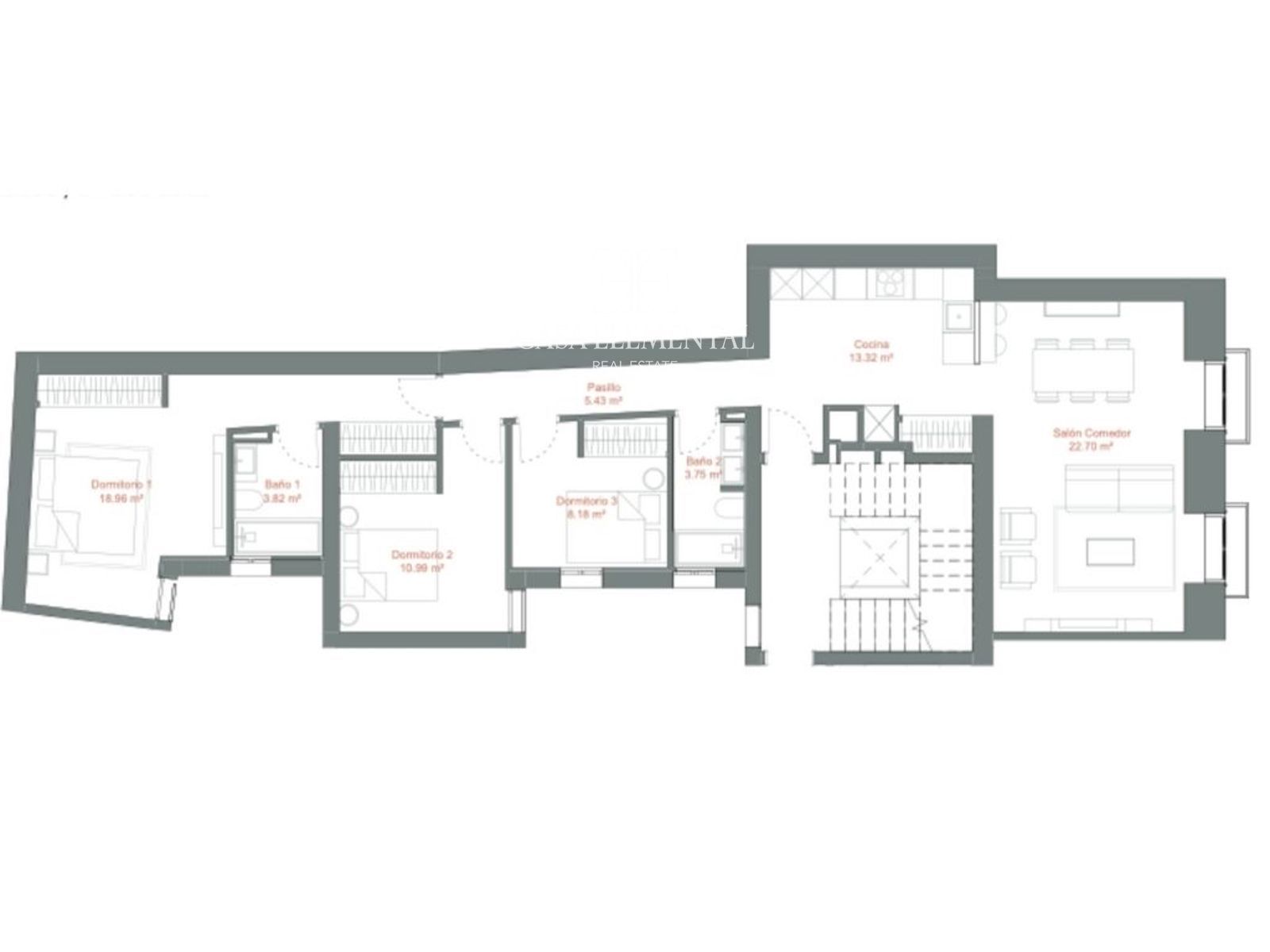 Located in the desirable Justicia neighborhood, this bright 151 m² apartment on the third floor offers generous space, comfort and a high-quality residential environment. The property features 3 bedrooms, 2 bathrooms, an independent kitchen and a spacious exterior living–dining room filled with natural light, creating an elegant and welcoming atmosphere.