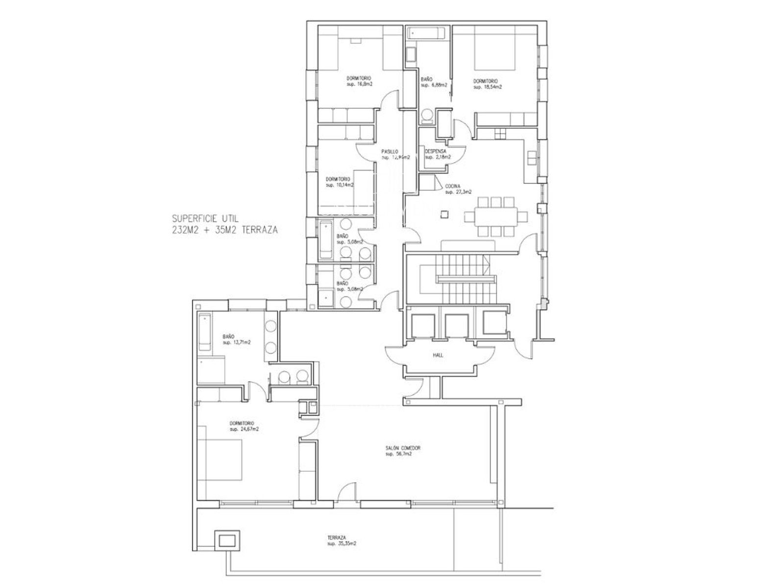 Exclusive semi- penthouse located in a landmark building designed by renowned architect Juan Manuel Ruiz de la Prada, with a protected façade, in the heart of the Salamanca district. Situated on the eighth floor, the property offers 282 m² of living space and a stunning 35 m² south-facing terrace with open views over Madrid.