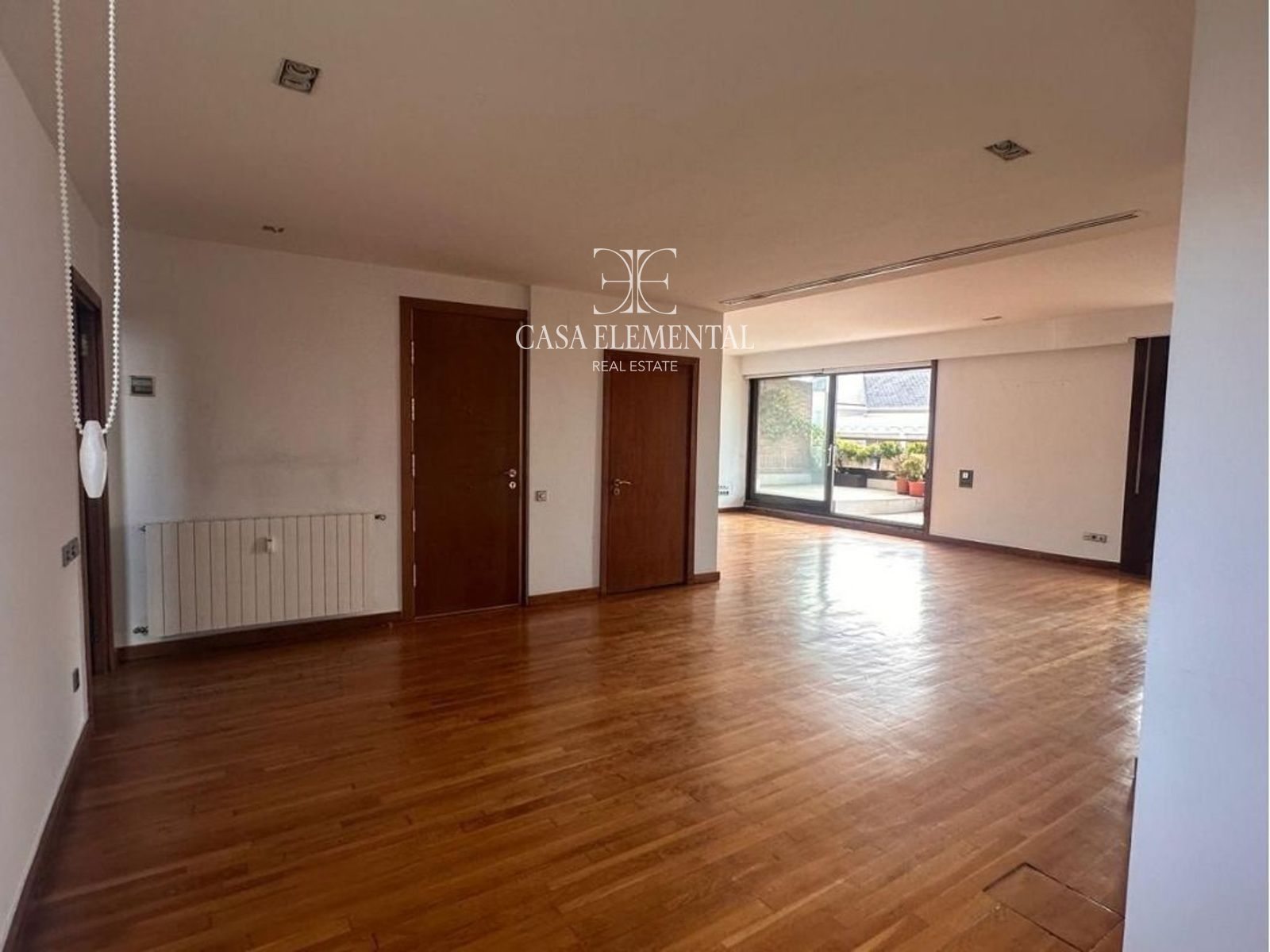The apartment features four bedrooms, all with en-suite bathrooms. Three bedrooms are exterior-facing, while the fourth overlooks a bright inner courtyard. The main suite opens directly onto the terrace through a four-meter-wide window and includes generous built-in wardrobes with overhead storage.